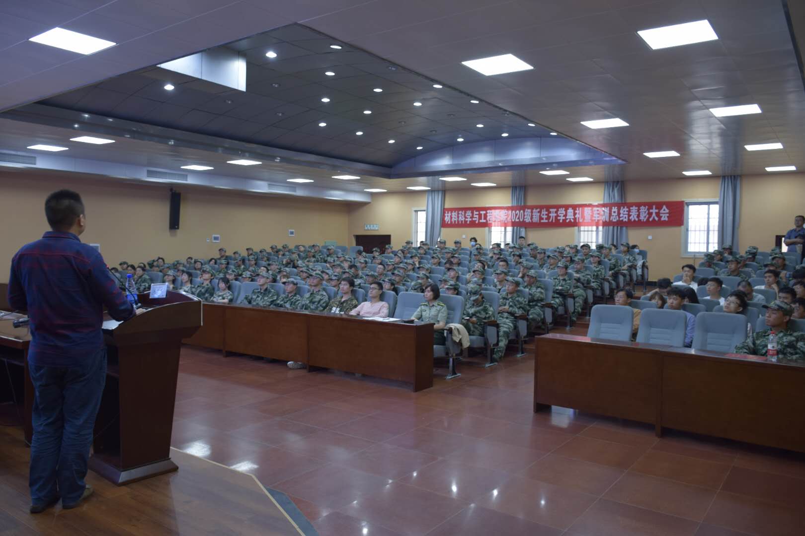 9月30日下午,材料学院院长毛卫国教授在金盆岭四教报告厅为2020级全体新生讲授“新生第一课”。