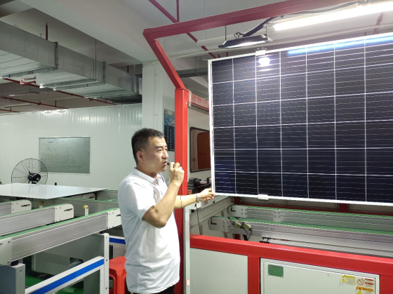 他讲解了电池组件的原材料:低铁钢化绒面玻璃、EVA(热熔胶粘剂)、TPT(聚氟乙烯复合膜)、互连条与汇流条、助焊剂、铝合金边框、接线盒、硅胶,以及太阳能电池测试的目的、要点。