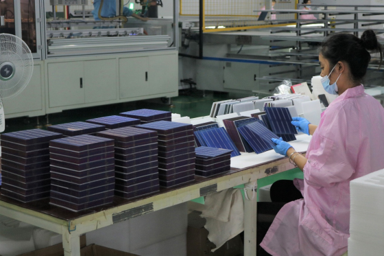 (7)组框区(装框及装接线盒是将固化层压件变成便于电性能输出和便于安装的组件的过程,该过程用于提高组件的机械性能和用于保证组件的电性能输出)