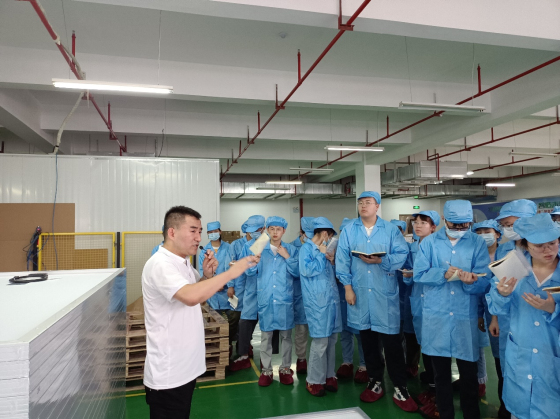 生产主管付志强带领学生们参观了生产产线展区及电站,他先跟学生们强调了注意事项,随后依次介绍了