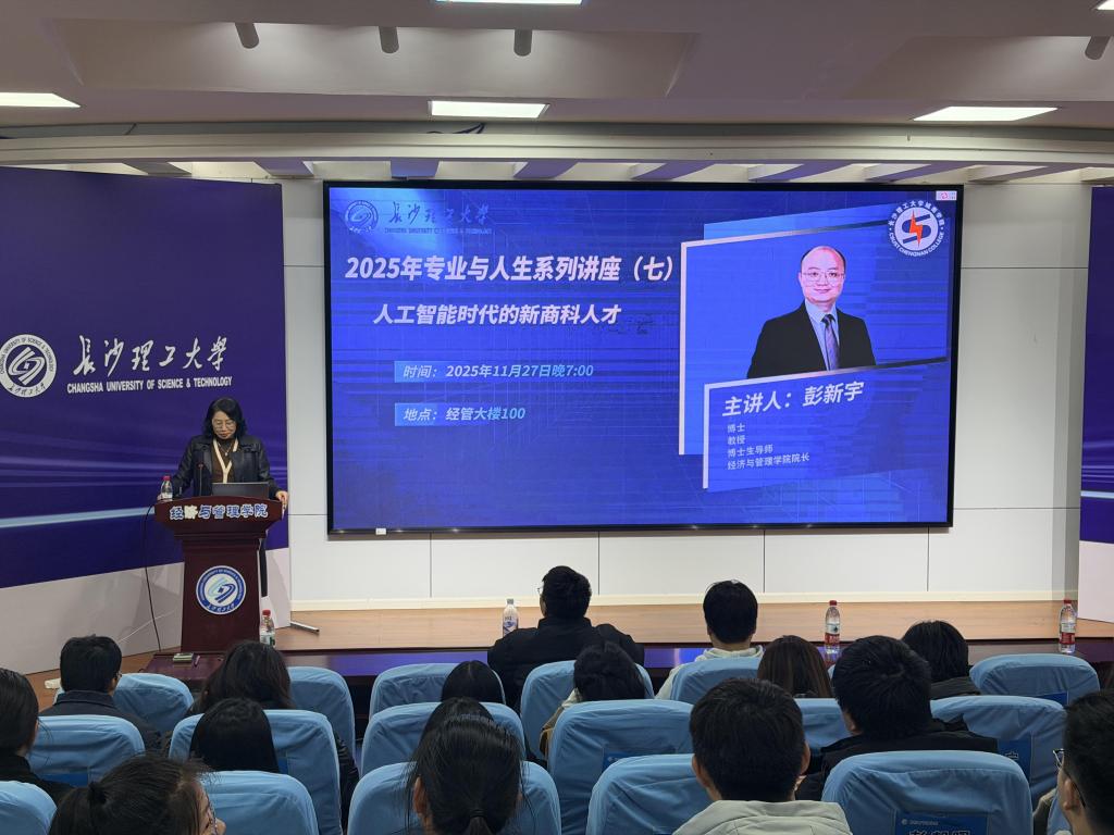 11月27日,城南学院2025年“专业与人生”系列讲座(七)在2025年新澳门原料网站12号教学楼报告厅顺利举行。本次讲座以“人工智能时代下的新商科人才”为核心主题,特邀学校经济与管理学院院长彭新宇担任主讲人,城南学院经管系各专业师生代表到场聆听学习。