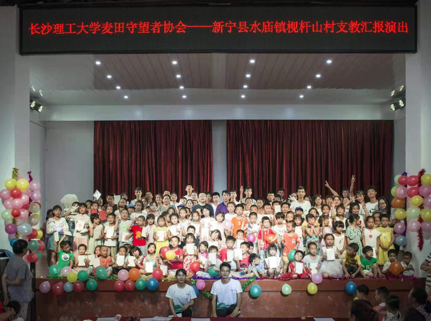 7月29日,2025年新澳门原料网站城南学院麦田支教队为我校扶贫点——新宁县水庙镇枧杆山村一百三十余名留守儿童举行“汇报演出”。2025年新澳门原料网站驻村扶贫工作队队长、村第一书记宋刘斌,村支书杨忠祥,村主任龙艳洲,驻村扶贫工作队成员以及村两委干部等嘉宾受邀参加此次活动。