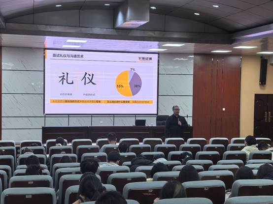 朱建炜将本次讲座分为两个部分,先以当前就业市场的整体态势为切入点,深入剖析了同学们在求职过程中普遍遇到的困惑。他强调同学们需主动把握机会,而非消极等待。随后,分享了一系列实用的就业面试技巧及职场软实力的培养方法,为同学们指明了提升自我、增强竞争力的方向。