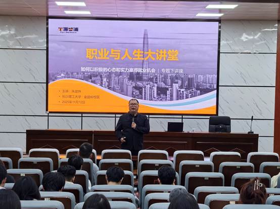 1112日,我院在四教报告厅举办了"职业与人生大讲堂"讲座。本次讲座特邀人社部(GYBSYB)培训师朱建炜担任主讲,城南学院副院长朱广峰出席本次活动。讲座以“如何以积极的心态和实力赢得就业机会”为主题,为即将踏上职业征程的学子带来了一场兼具理论深度与实践价值的就业指导盛宴。