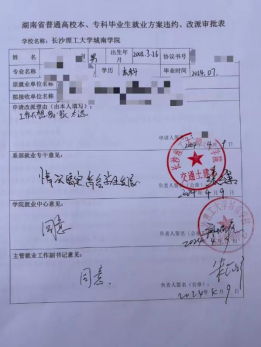 第四步:办理好的湖南省普通高校本、专科毕业生就业方案违约改派审批表;