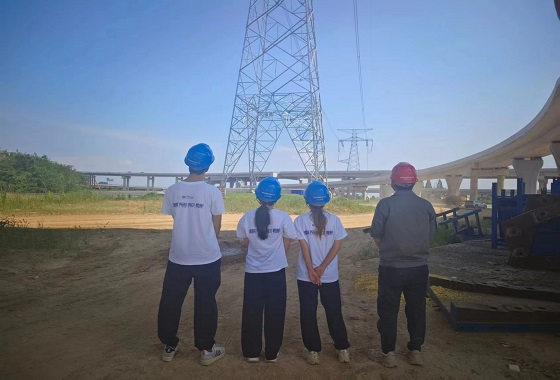 7月26日上午,电气学院赴国网湖南省超高压输电实践队常德方向的三位实践队员跟随师傅来到山区变电站以及高速公路施工现场学习输电安全知识。