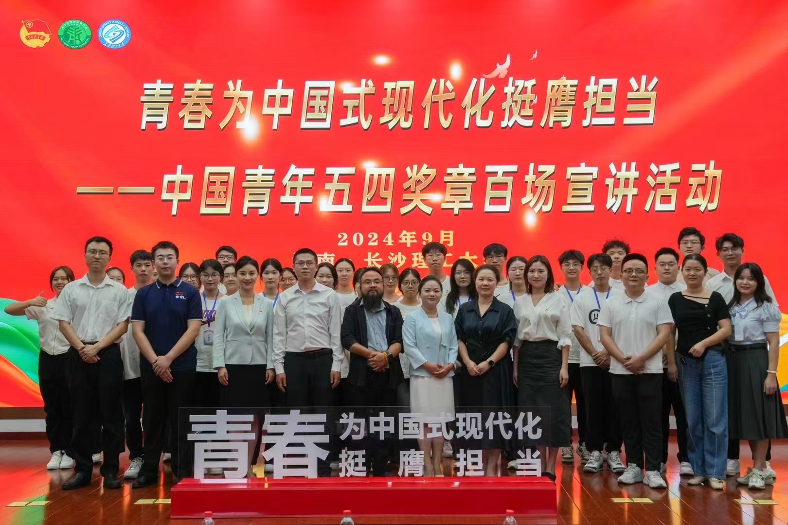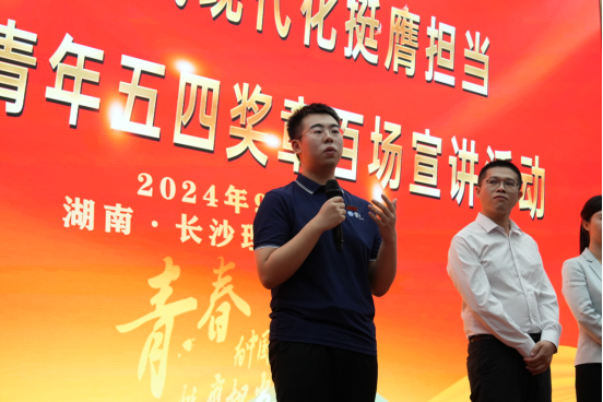 9月24日,中国青年五四奖章百场宣讲活动(湖南)在云塘校区图书馆报告厅召开,我院电气2202班学生、分团委学生会团委副书记朱奕铮作为唯一学生代表上台发言。