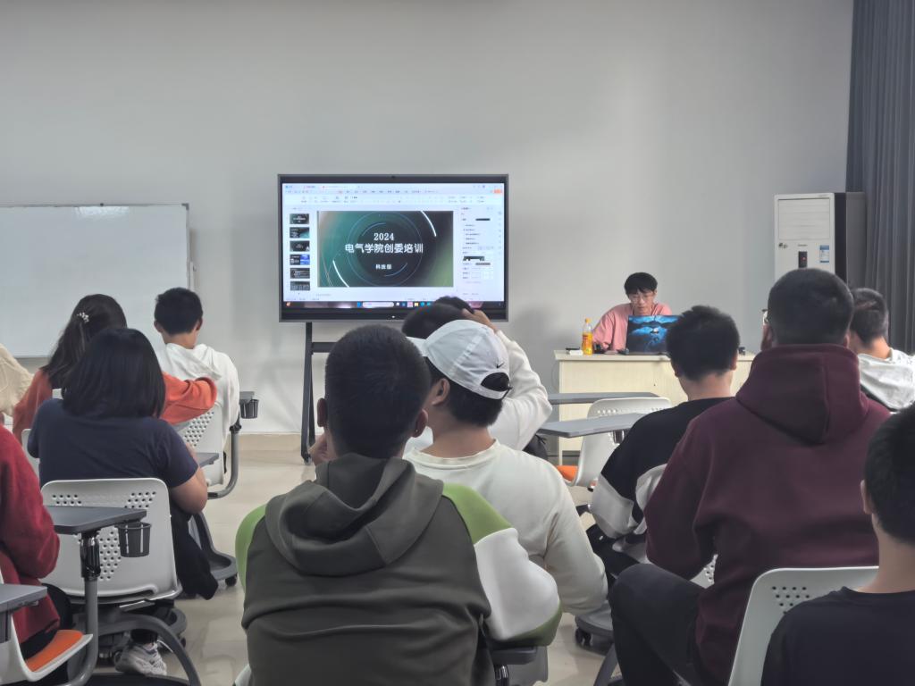 培训会上,丛烨就学院学生会科技部承办的相关赛事和活动进行详细讲述,强调了科创委员在推动科创氛围、鼓励同学参与赛事中的重要职责。他介绍了大学生创新创业大赛、挑战杯大学生学术科技作品竞赛、“电苑杯”校园电子设计大赛等学科竞赛的基本情况,也对科技部举办的一系列科技趣味活动进行介绍他建议创委们主动了解并熟悉各项赛事,积极在团支部中宣传和推广,努力营造良好的科创氛围。在培训的过程中,各班创委认真听讲,积极记录会议内容,展现出了电气学院新生积极向上的精神风貌。