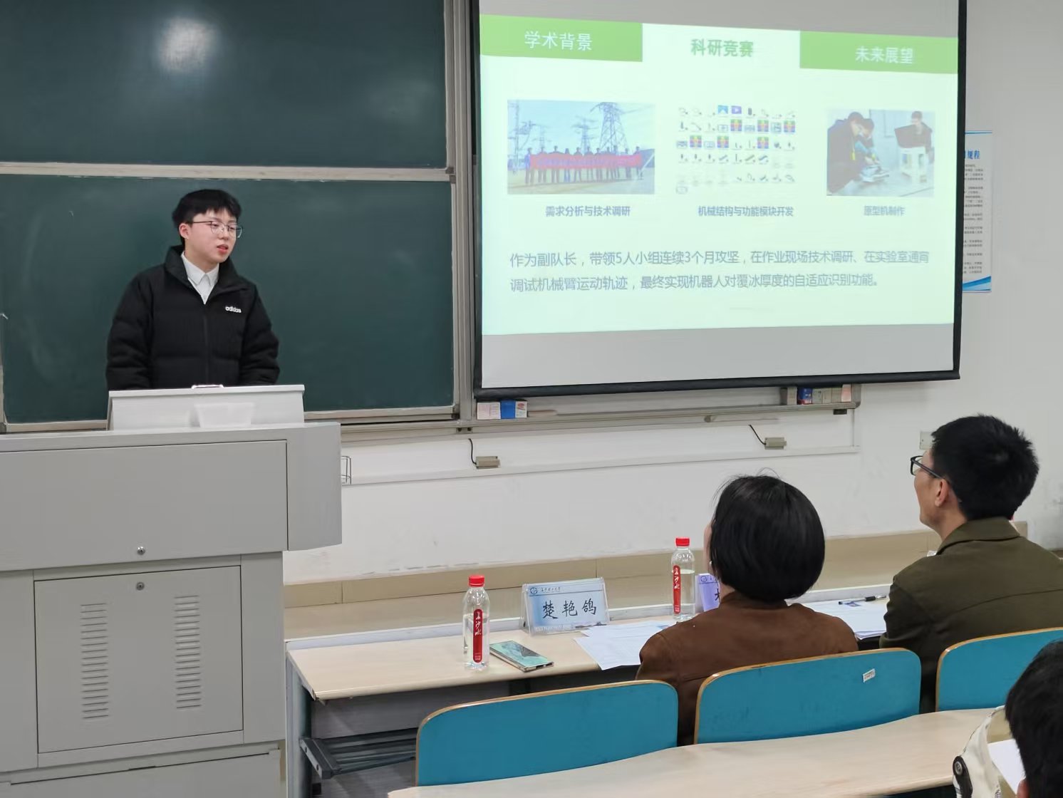 为保证答辩会的公平、公正、公开,现场采取候选人PPT展示加评委提问的方式进行。每位候选人按照答辩顺序依次上台,分别从学习成绩、社会实践、学科竞赛、志愿服务等方面,结合所申报奖学金类别,对个人及团体取得的成果,团队成果、风采,未来展望进行全方位、多角度的展示。评委们根据展示内容进行提问和点评,评委们的问题既涵盖专业知识的深度挖掘,也关注学生的综合素质和未来发展潜力。候选人们沉着应对,凭借丰富的知识储备和清晰的思维逻辑,对问题进行了精彩的回答,充分展现了长理电气学子的风采和自信。