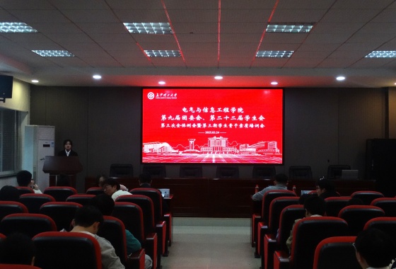 3月24日晚,我院于工科一号楼B503报告厅召开第九届团委会第二十二届学生会第三次全体例会暨第三期学生骨干素质培训会,电气学院党委副书记周巍、团委书记田孟萍、辅导员朱杰、赫连岚馨出席,团委会学生会全体成员到场参加。
