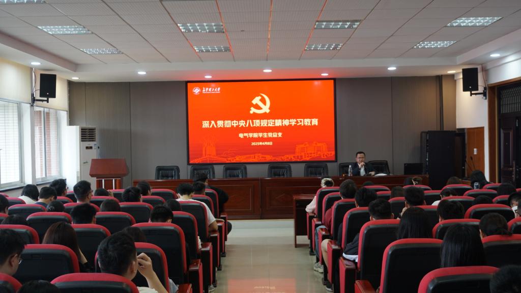 4月8日下午,院党委副书记、副院长周巍在工一B503主持召开电气与信息工程学院学生党总支深入贯彻中央八项规定精神学习教育启动部署会。各学生党支部书记及全体学生党员参加。