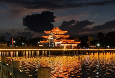 当晚,团队前往琼湖公园夜游。湖心堤的独特格局、古树亭阁与湖面游船相映成趣,展现了水乡风情。网箱养鱼游乐区则提供了生态渔业观光体验。实践队成员在自然与人文交融的景色中放松身心,圆满地结束了当天的行程安排。