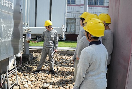 运维班师傅徐飘向实践队员介绍220kv变电器安全保护装置