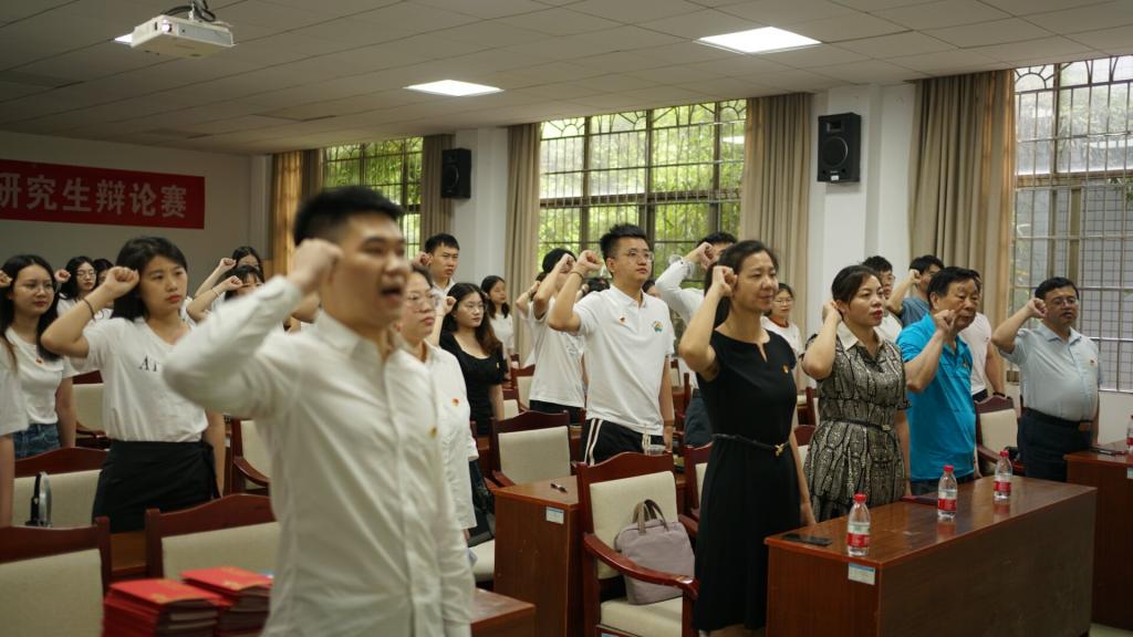 随后,全体毕业生党员重温入党誓词。铮铮誓言,神圣且豪迈,党员们为共产主义奋斗终生的决心更加坚定。接着,由经管学院领导老师向各位毕业生党员赠予信仰礼包。