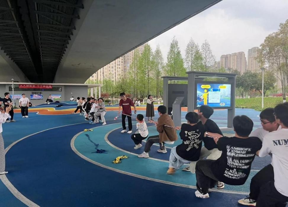 最后举行的拔河比赛将整个活动推向了高潮。同学们分成两队,紧握绳索,展开了一场激烈较量。现场气氛紧张而热烈,同学们的加油声、呐喊声响彻整个公园。