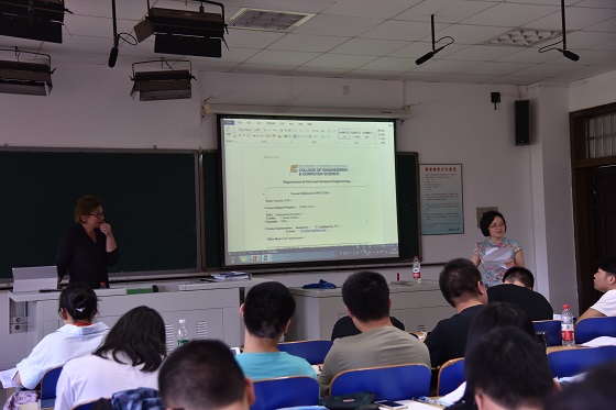 开始授课前,国际学院院长陈瑜、副院长秦卫星分别对五位外教,尤其是首次来华授课的UTC工程与计算机科学学院副院长Neslihan Alp教授的到来表示了热烈欢迎,向同学们隆重介绍了承担授课和助教任务的老师们,并对同学们提出了课程学习的要求和期望,鼓励刚开始进行外方引进课程学习的2017级学生多下功夫,增进与外教交流,熟悉外教授课方式,为后续大规模的引进课程学习和赴美深造奠定基础。