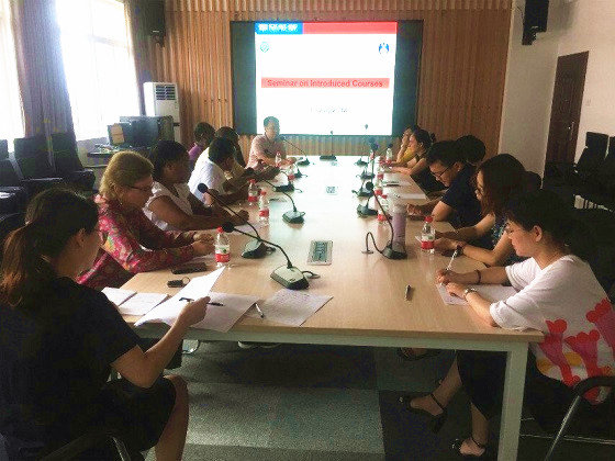7月3日我校首个中外合作办学项目(土木工程专业)引进课程教学专题研讨会在国际学院会议室成功召开。项目合作学校美国田纳西大学查塔努加分校工程与计算机科学学院副院长Neslihan Alp教授,土木系主任Owino Joseph教授等5名外籍教师,和我校交通运输工程学院、土木工程学院、水利工程学院的张锐、曾明华、余志等7名引进课程助教老师及国际学院中外合作项目办公室全体教务人员参加会议。会议由副院长秦卫星主持。