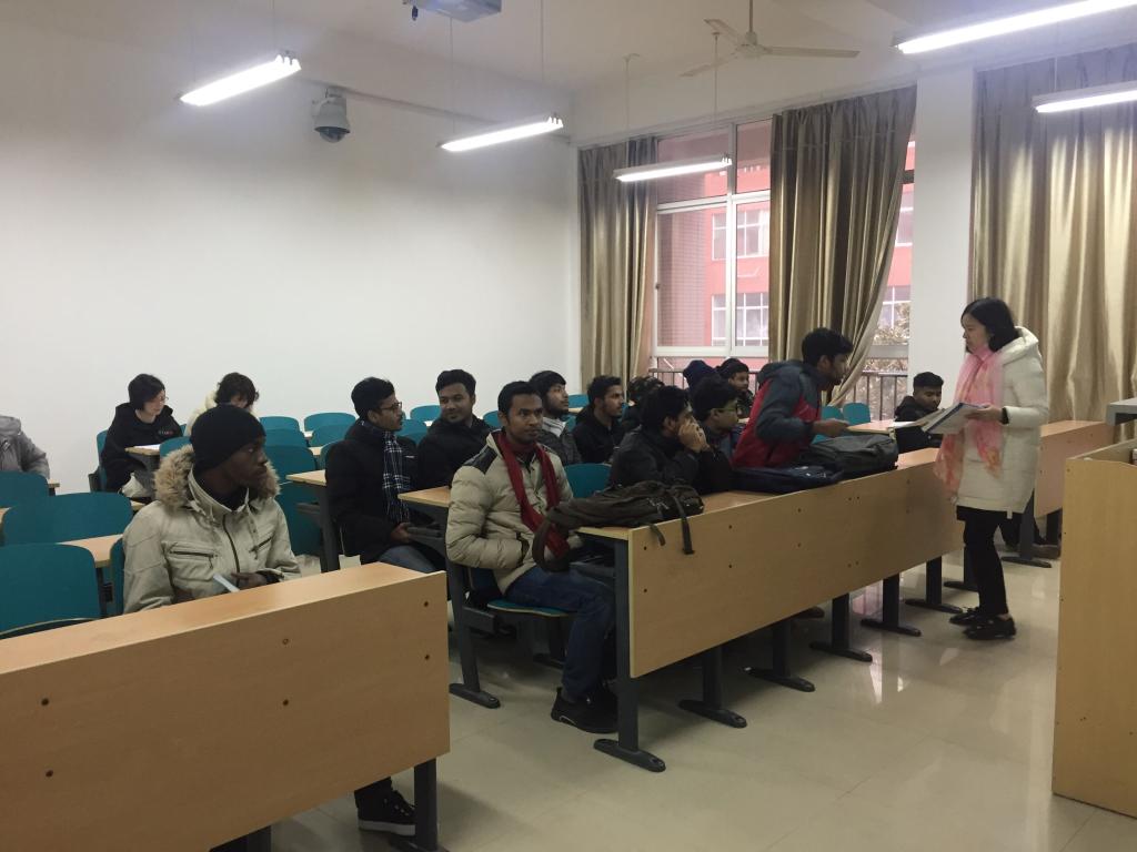 为保障2018-2019(2)学期学院教学工作健康稳定开展,2月25日校党委委员兼国际学院党总支书记付嫦娥、院长陈瑜、党总支副书记吴振华、副院长秦卫星、甘海鹰带领国际学院教学管理人员和学生辅导员深入中外合作办学项目(土木工程专业)和国际学生课堂,对开学第一天的教学秩序进行全面走访和了解,并及时总结了检查情况,处置应对发现的问题。