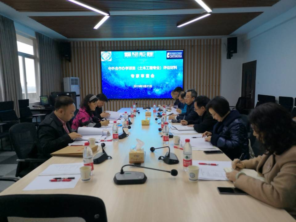 3月31日下午,中外合作办学项目(土木工程专业)自评工作专家审查会在新能源大楼1号楼416会议室顺利召开。会议邀请了湖南农业大学国际学院院长岳好平、湖南商学院国际商学院院长张漾滨和湖南大众传媒职业技术学院国际交流处处长王涛担任评审专家,我校高等教育教学评估与研究中心主任袁剑波、教务处处长刘朝晖、国际交流处处长吴迪龙、国际学院院长陈瑜、党总支副书记兼副院长吴振华、副院长秦卫星,高等教育教学评估与研究中心贺晖老师以及中外合作办学项目办公室全体人员参加。会议由袁剑波主持。