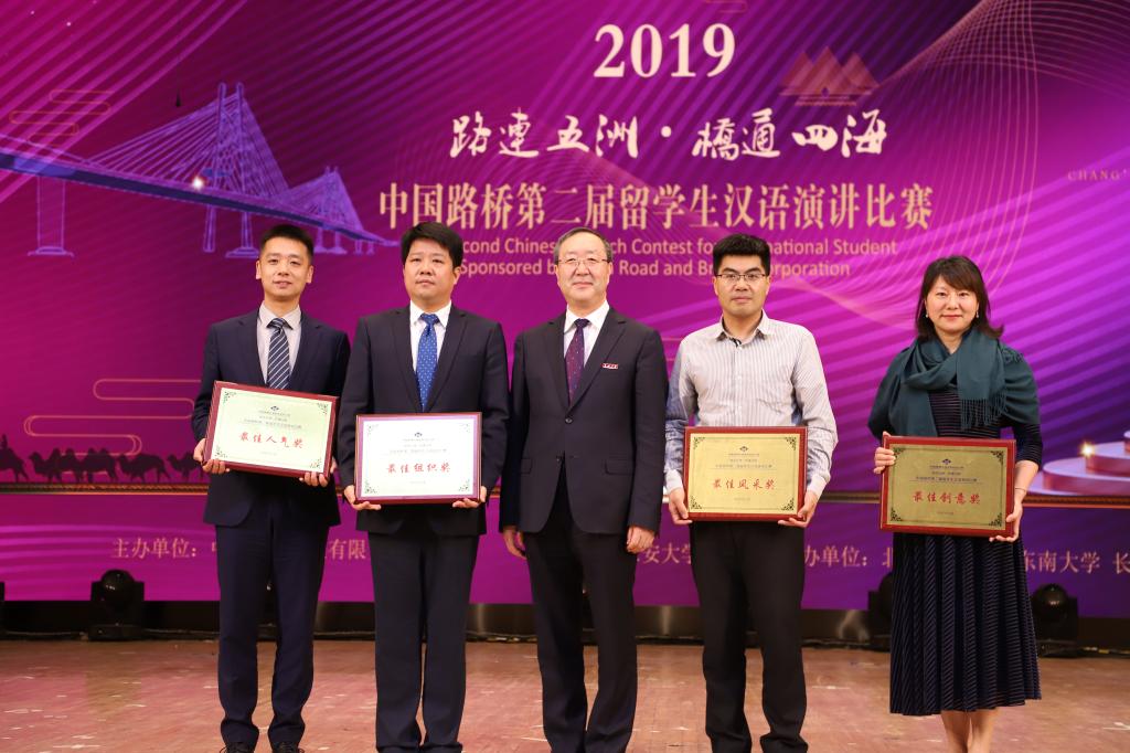 5月28日,“路连五洲·桥通四海”中国路桥第二届留学生汉语演讲比赛决赛在位于古城西安的长安大学隆重举行。我校与中国路桥工程责任有限公司合作培养的赤道几内亚籍留学生王安、肯尼亚籍留学生韩一晨,与其他15位分别来自长安大学、北京交通大学和东南大学的六国留学生同场竞技,精彩讲述他们和中国的故事。国际学院副院长甘海鹰、国际学院国际学生工作办公室王荟惠、孙夕珺,以及汉语国际教育教研室冀文秀出席了活动。