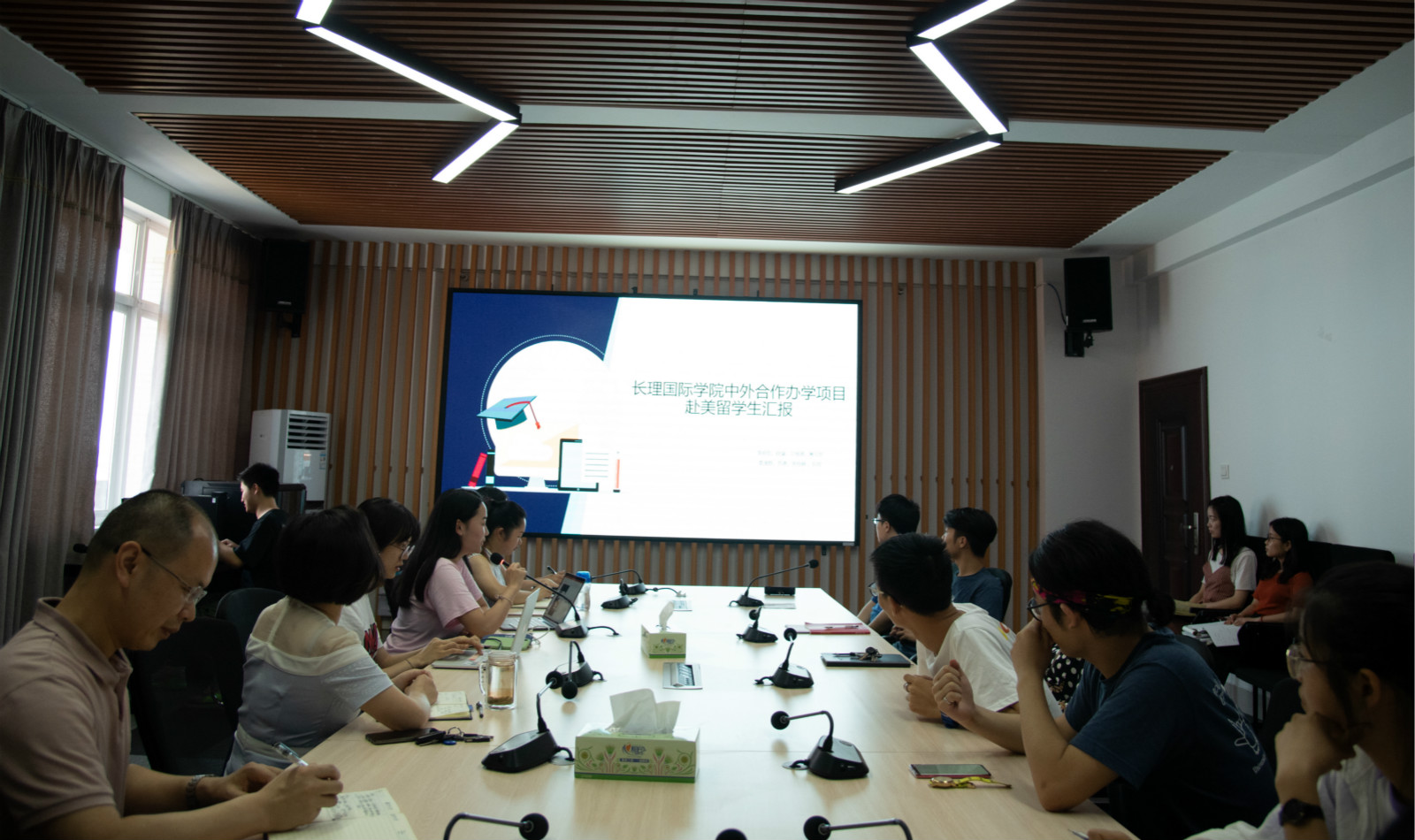 6月4日下午,国际学院中外合作办学项目(土木工程专业)首批赴美学生学习汇报会在云塘校区新能源大楼1栋416会议室成功举办。国际学院党总支书记付嫦娥、院长陈瑜、党总支副书记兼副院长吴振华、副院长秦卫星、中外合作办学项目办公室全体老师,2015级10名赴美学生,以及2016、2017级学生代表参加了本次会议。