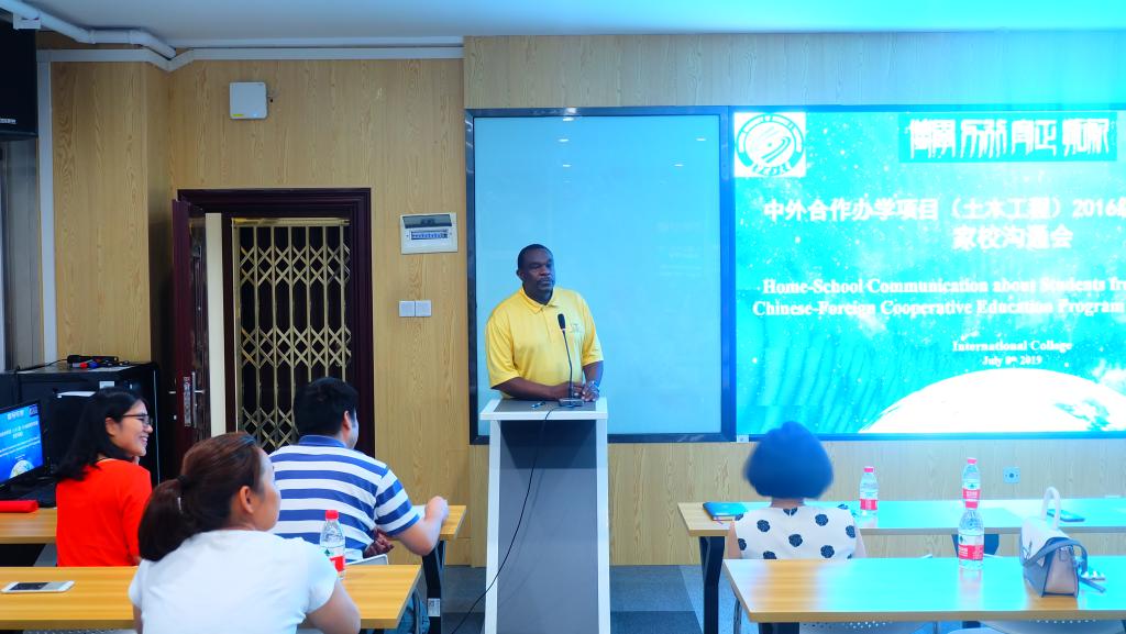 7月8日晚7点,中外合作办学项目(土木工程专业)2016级学生赴美国田纳西大学查塔努加分校学习行前家校沟通会在新能源大楼1栋404顺利召开,国际学院院长陈瑜、副院长秦卫星、美方合作院校土木与化学工程系主任Joseph Owino教授、美方教师代表Ignatius Fomunung教授和吴卫东博士、中外合作办学项目办公室老师和即将赴美学习的2016级13位学生及其家长参加。会议由副书记兼副院长吴振华主持。
