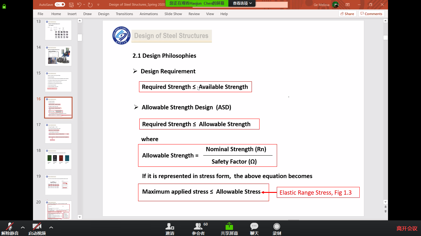 本学期首门引进课程为中外合作办学项目(土木工程专业)2017级的《Design of Steel Structure(钢结构设计)》,由理论与实战经验都十分丰富的Haojun Chen教授承担教学,并邀请我校土木工程学院肖林发博士全程担任课程助教。“录播学习+直播答疑”的混合教学模式不仅有效兼顾师生面临的共同问题,也有力保障了课程教学质量。13日当天,国际学院2017级100名学生同步进行了线上学习。14日早上8点,Haojun Chen教授克服时差,通过ZOOM平台与学生共赴“云端之约”。