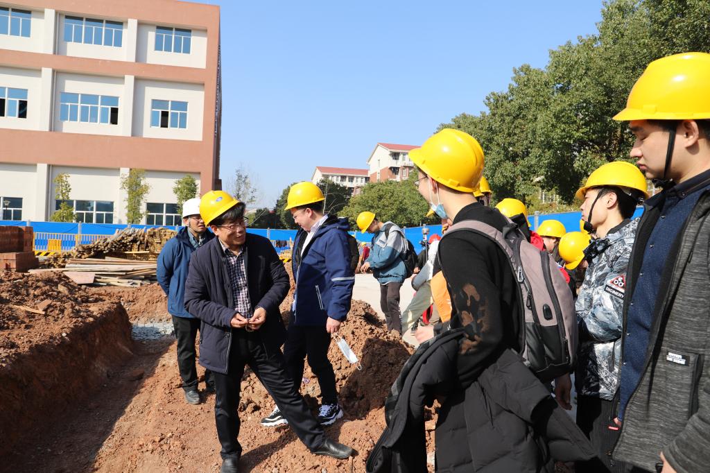 此前,为了进一步服务教学工作,促进产学研融合,基建处在与相关学院及施工单位充分协商论证后,在切实保障学生安全的前提下制定了学生进工地实践实训的方案制,并将学生工训中心、基础实验中心作为学校土木、建筑等专业实践实训基地。本次是第一批见习学生,之后会继续对接教学院,让更多专业的同学走进工地见习。