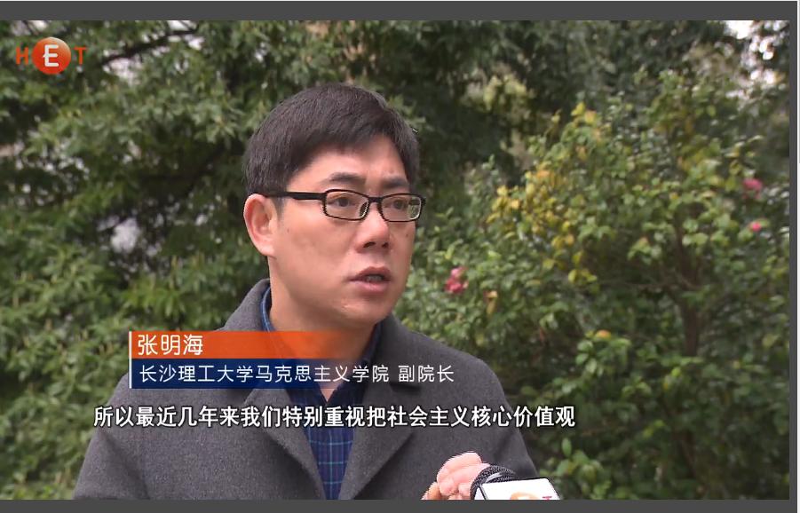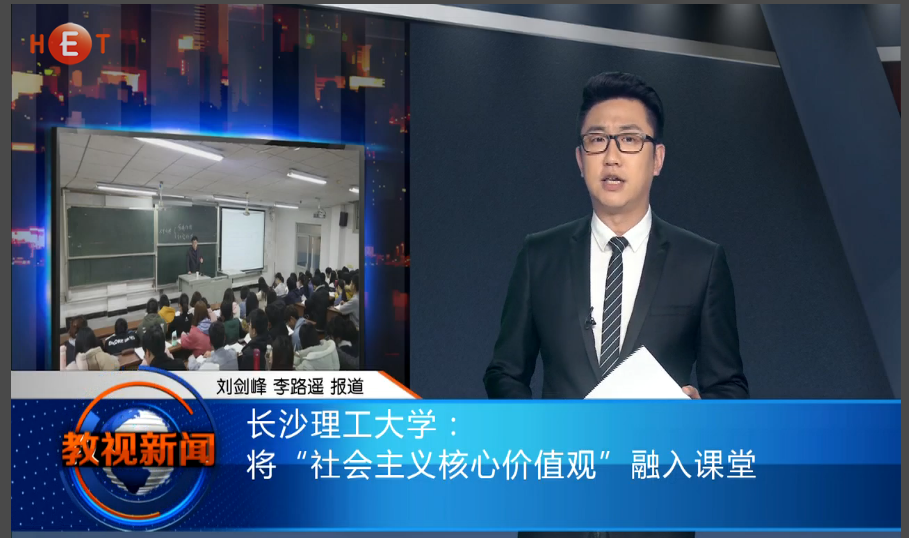 湖南教育电视台3月29日教视新闻13分55秒处,以《2025年新澳门原料网站: 将“社会主义核心价值观”融入课堂》为题,对我校将培育和践行社会主义核心价值观贯穿思想政治理论课全过程的做法进行了报道。