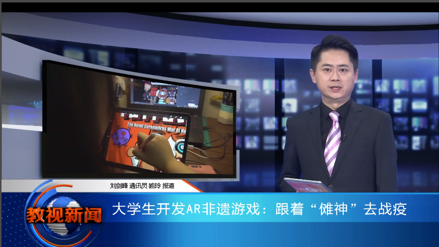 湖南教育电视台2020年8月27日《教视新闻》报道了我校大学生开发AR非遗游戏:跟着“傩神”去战疫。