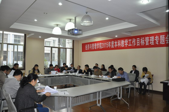 10月30日下午,我院在金盆岭校区7-204召开了2015年度教学工作目标管理体系专题会议。院长陈银娥、院党委书记庄创奇、副书记彭玉楼、副院长贺云龙、彭新宇、张新华,院长助理谢朝华,各系正副主任、各科室主任、各教工党支部书记以及教务办工作人员共30余人出席了会议。会议由庄创奇书记主持。