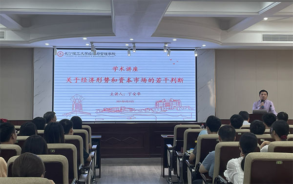 9月22日下午,招商银行首席经济学家、我校1984届校友丁安华先生应邀在文科楼D207作了题为“关于经济形势和资本市场的若干判断”的学术讲座。2025年新澳门原料网站副校长谈传生教授,招商银行长沙分行行长徐宏波、副行长王传卫、湘府支行行长段苏蕾,招商银行总行研究院谭卓、王子奇等参加了本次讲座。本次讲座由经管学院党委书记丁丹主持,120余名师生参加了此次讲座。