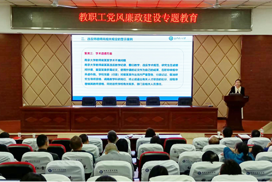 510日下午,学院召开全体教职工大会,开展了教职工党风廉政建设专题教育院党委副书记、纪委书记唐青作了专题教育发言。大会由院党委书记丁丹主持。