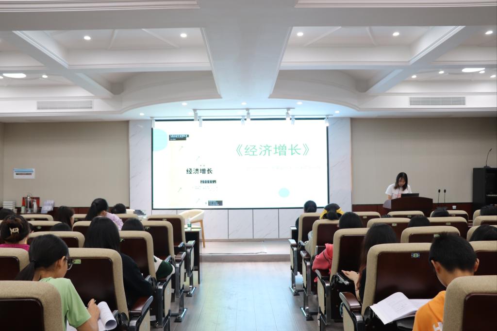接着,陈洁老师与大家分享了《区际经济与国际贸易》读书心得,她围绕作品起源、主要内容、重要思想和产生影响等方面一一进行阐述,向大家介绍该书共分为五部分,具有较强的逻辑性,涵盖了国贸专业的相关理论知识,同时还与宏观经济学、微观经济学、政治经济学等学科相联系。她指出该书不仅在国际经济与贸易专业中具有较高的地位,而且在其他经济学教科书中具有重要的影响力,如国际贸易中的HO定理便是源自于此书。最后,陈老师还与同学们共享了该书的第50页经典片段,带领大家走近经典。