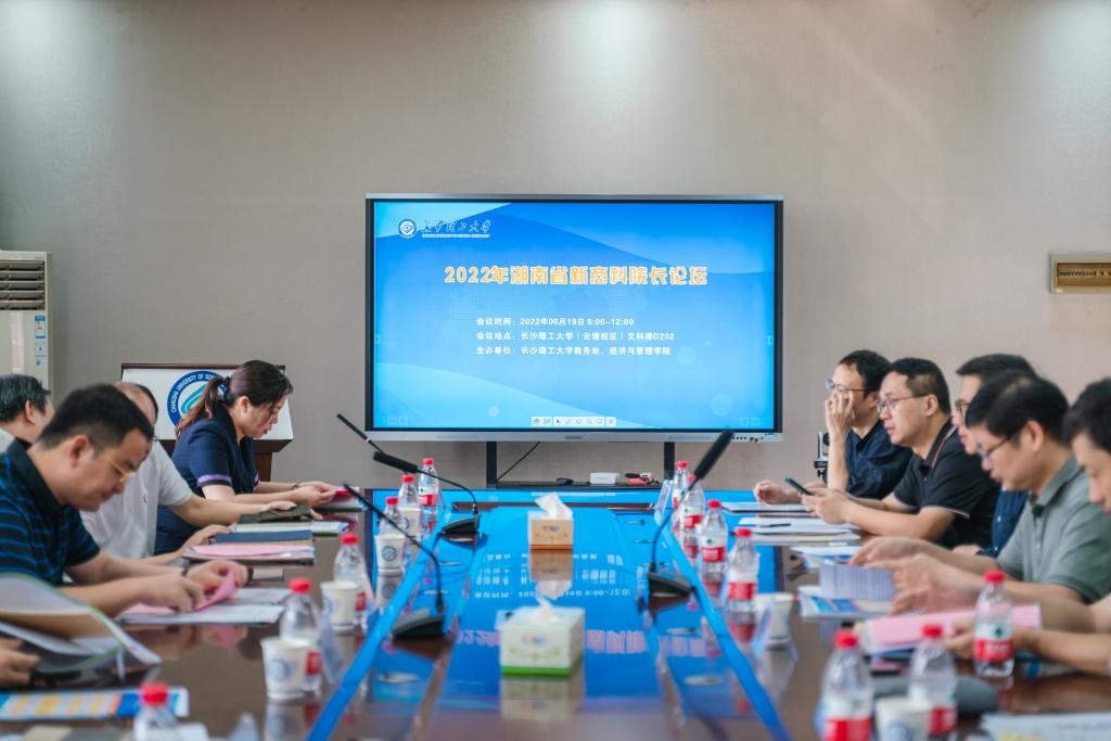 为进一步落实立德树人根本任务,探索新商科建设发展之路,促进学生专业实践能力和研究创新能力的提升,6月19日,由我校教务处、经济与管理学院共同主办的2022年湖南省新商科院长论坛在云塘校区文科楼D202隆重召开。湖南省教育厅高教处副处长王荣、“学创杯”竞赛全国组委会委员、杭州贝腾科技有限公司执行董事、总经理黄林、中南大学商学院副院长李大元、湖南大学工管院副院长周忠宝、湖南师范大学商学院副院长曹虹剑、湘潭大学商学院副院长醋卫华、湖南科技大学商学院副院长张志彬、湖南农业大学商学院副院长莫鸣、南华大学经济管理与法学学院副院长陈鸣及我校副校长曾祥君、教务处处长刘思强、创新创业教育学院院长蒋加伏、经管学院党委书记丁丹、副院长彭新宇、刘坚等30余人出席会议,会议由经管学院党委书记丁丹主持。