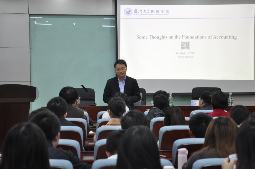 2019年11月18日上午9点,厦门大学管理学院于李胜教授在金盆岭校区七教212为我院师生做了题为“关于会计学科学习、研究体会”的学术讲座。此次讲座由副院长王治教授主持,学院党委书记王宏、学院部分老师和研究生100余人一起聆听了此次讲座。