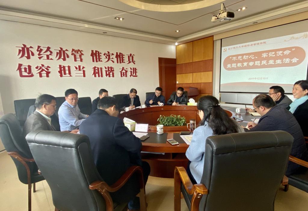 按照学校主题教育办统一部署,12月10日上午,经济与管理学院党委在文科楼D-506召开了“不忘初心、牢记使命”主题教育专题民主生活会。副校长谈传生、主题教育工作督导组第四组组长刘安生到会指导。院党委书记王宏主持会议,院党委全体委员参加,党外院领导列席。