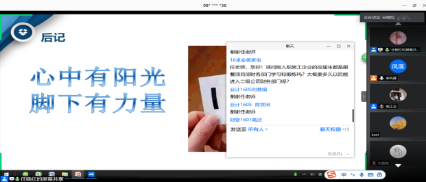 因今年毕业生700多人,而腾讯会议室只能容纳300个人,为此财会系主动出击、精心组织,开通了在线会议室外直播功能,做到让每一个毕业生都能参与进来,使每一位毕业生均有学习的机会。(文 图/李凤莲 审/袁江云)