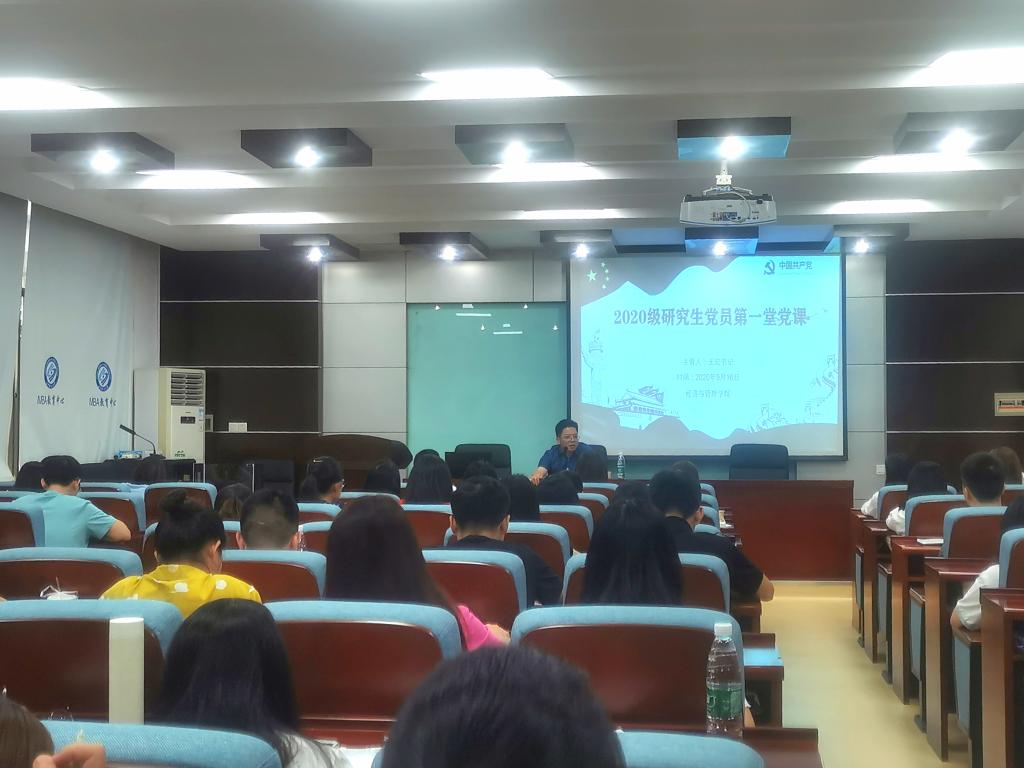 为引导2020级研究生新生党员树立先锋模范带头作用,加强党员党性修养,经济与管理学院于9月16日上午在金盆岭校区7教212顺利举办“党委书记为研究生新生讲第一堂党课”活动。本次党课主讲人为学院党委书记王宏教授,院党委副书记唐青、2020级全体研究生新生党员、新生班干部到会聆听。会议由研究生辅导员周路路老师主持。