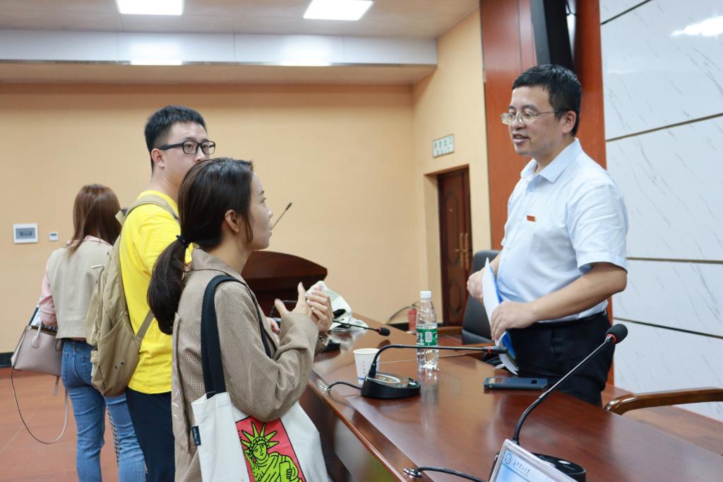 王治教授结合自身的求学经历和工作经历,依次从情怀、操守、担当三个方面详细解读了新时代研究生所应具备的科学精神。首先,“有情怀”即心怀祖国,专业报国。科学没有国界,但科学家有祖国。王治教授强调,无论是做实证研究还是案例研究要结合最新的国家政策和经济趋势,符合国家需求。其次,“守操守”即恪守学术道德,遵循学术规范。王治教授从翟天临事件说开去,让同学们认识到违反学术规范会受到严肃处理。新时代的研究生要热爱科学、探求真理,坚持立德为先、诚信为本,在践行社会主义核心价值观、引领社会良好风尚中率先垂范。最后,“敢担当”即自强自信,勇于创新。王治教授强调,研究生不同于本科生,对于学术方面应该有更高的要求,并对在座的全体研一新生提出了如下几点建议:一、珍惜每堂课,努力做到博学;二、熟读各专业书目和期刊,掌握发展前沿;三、主动参与导师课题研究,做到学以致用;四、积极参加学科竞赛和社会实践;五、大胆参加国际学术交流,开阔研究视野。