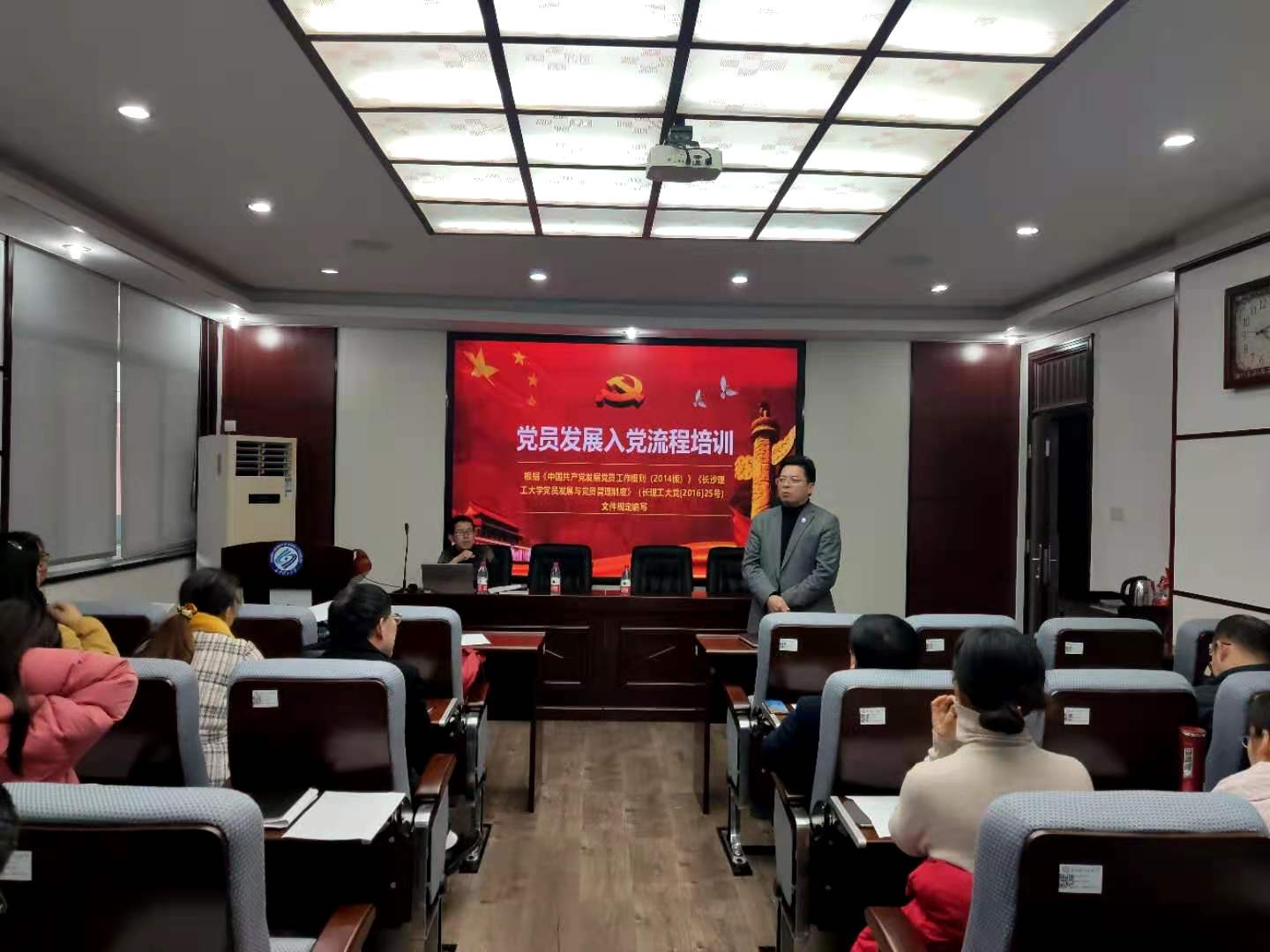 为提升我院教师党支部全体支部委员的能力素质和业务水平,规范党员发展入党流程,进一步促进院党建工作高质量发展,12月1日下午,我院在文科楼E501举办党员发展入党流程和基层党建实务培训会。院党委书记王宏、院专职组织员丁力作培训报告,教师党支部全体支部委员参加学习,院党委书记王宏主持会议。