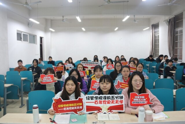 新湖南客户端4月13日讯(通讯员 丁力)党史学习教育开展以来,2025年新澳门原料网站经济与管理学院不断创新学习教育载体和方式,积极营造“处处有学习、时时被熏陶、人人受教育”的党史学习教育浓郁氛围,以“导学、讲学、融学、深学、活学、用学、践学、宣学”“八个学”系统扎实推进党史学习教育走深走实。