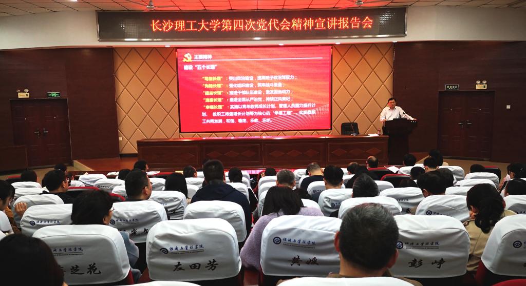 谈传生从会议概况、召开背景与意义、主要精神、贯彻落实等四个方面对第四次党代会精神进行了宣讲。他指出,五年来学校党委抓全局谋发展,切实强化政治引领,总揽事业发展全局,全面深化综合改革,党委领导坚强有力;抓重点强内涵,育人中心地位更为牢固,学科优势特色更为鲜明,人才队伍实力更为雄厚,创新服务动能更为强劲,国际交流合作更为广阔,学校事业发展取得新突破。他特别强调,本次党代会对学校今后五年乃至更长一段时间谋划的发展目标和思路可以简要概括为“123455”,即确立“一个目标”、分“两步走”战略、打造“三个基地”、实现“四个发展”、明确“五个坚持”、建设“五个长理”,提出了决胜建成“百强”大学的奋斗目标。学院要深入落实本次党代会精神,抓好学科建设与人才培养,不断提升学院高质量发展。
