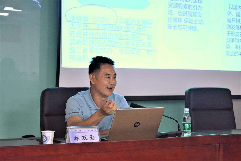 讲座伊始,林教授主要介绍了构建新发展格局的五个重点,分别是:调适发展取向、增强发展动力(良性双循环)、创新发展机制、优化发展结构、改善参与全球经济治理。随后,林教授还有针对性的提出了理解新格局需要理清双循环及其相互关系。他指出作为发展新格局的核心内容,构建以国内循环为主体,国内国际循环协调配合的新发展动力和格局,需要准确把握国内经济大循环和国际经济大循环的内涵、边界和相互关系。