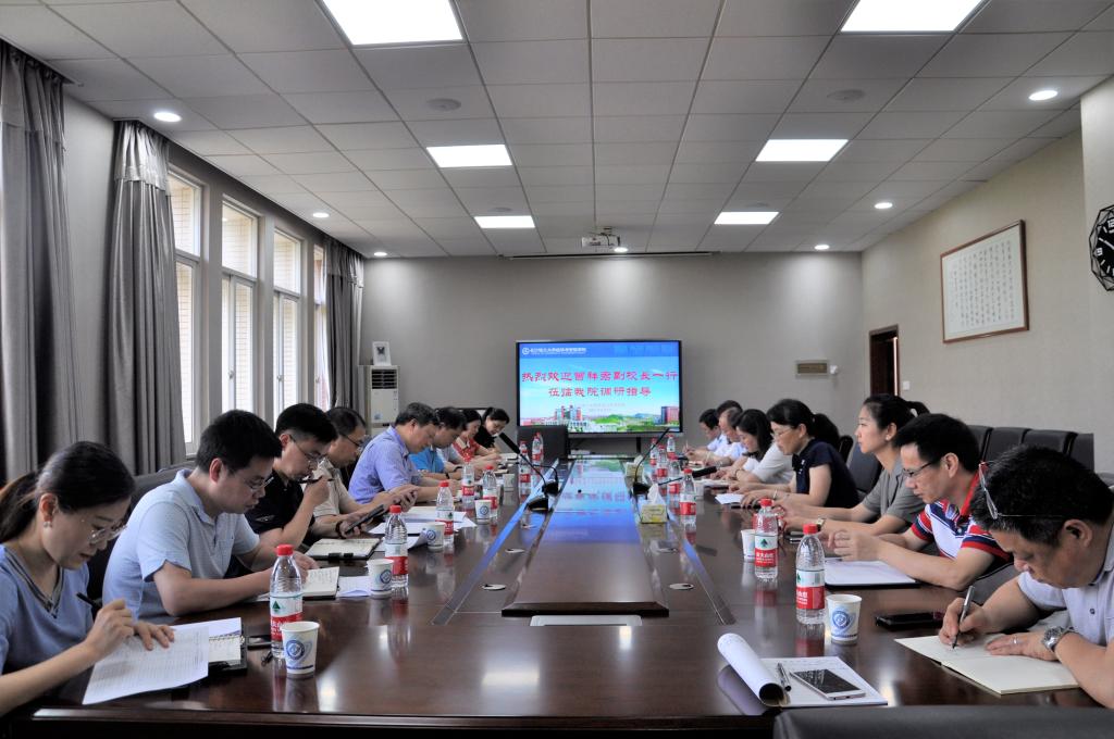 2021年6月9日上午,曾祥君副校长率人文社科处、科研部和成果转化中心等部门领导一行9人,来学院调研科研工作,学院全体领导参加,会议由学院党委丁丹书记主持。