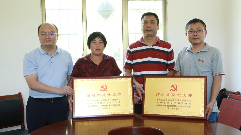 为推进乡村振兴工作走深走实,全国党建样板支部企业管理系党支部、经济与贸易支部与新宁县马头桥镇坪山村党支部进行了结对共建仪式,就“党建+”签署了共建协议。丁丹表示,结对共建支部将按照“共建促党建、共建促发展”的原则,努力形成“抓党建、解难题、促发展”的整体合力,巩固脱贫攻坚成果,助力乡村振兴,为坪山村的建设发展贡献智慧和力量。