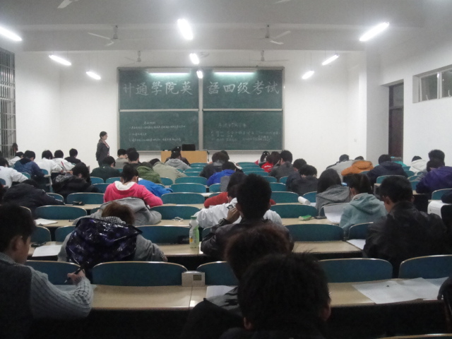 为了迎接即将到来的全国大学英语四级考试,让2010级新生提前熟悉全国英语四级考试的具体程序和适应考场氛围,12月2日晚七点,计通学院2010年大学英语四级模拟考试在理科楼教室举行,我院全体大一学生和部分高年级同学参加了考试。