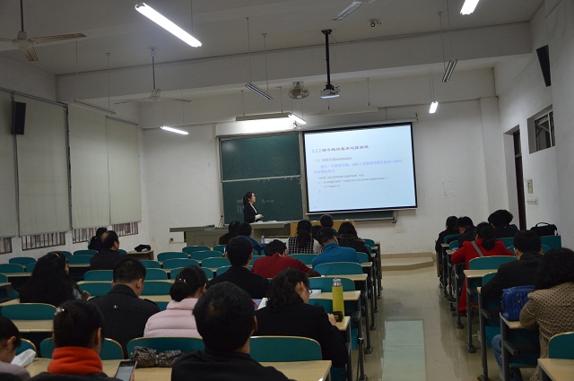 20161115日,我院青年教师课堂教学合格性评价第二场在理科楼A-102进行。院长李峰、校督导团团长高纯一教授、院教授委员会陈曦教授、乐晓波教授、姜腊林副教授到现场进行评课和指导,计算机科学与技术系全体教师及学院40周岁以下青年教师近40余人进行了观摩。