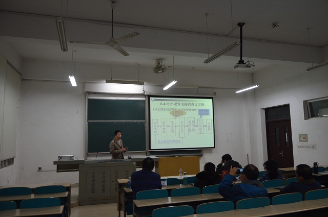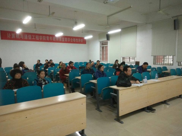 20161213日下午3:00,我院青年教师课堂教学合格性评价第五场在理科楼A-102进行。院长李峰、副院长王威、校督导团团长高纯一教授、院教授委员会罗可教授、肖晓丽教授、姜腊林副教授到现场进行评课和指导,通信工程系全体教师及学院40周岁以下青年教师进行了观摩学习。