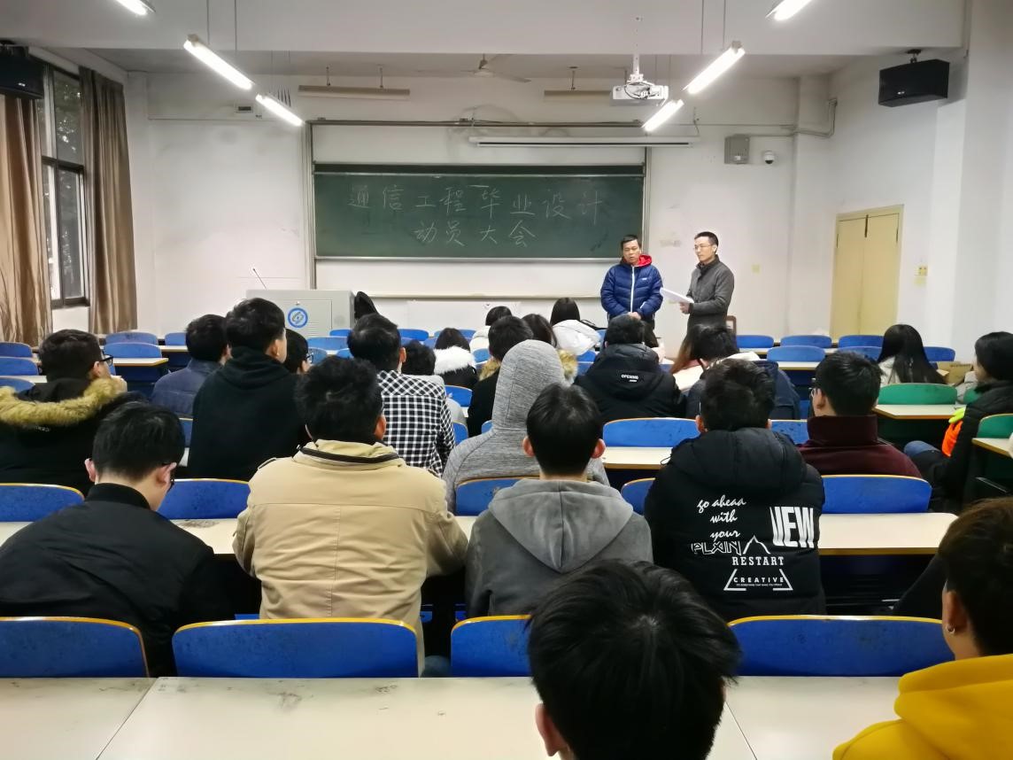 2018年12月11日下午,本部通信工程和城南学院通信工程2019届毕业实习、毕业设计动员大会分别在理科楼B区125教室和金盆岭6教202教室召开。